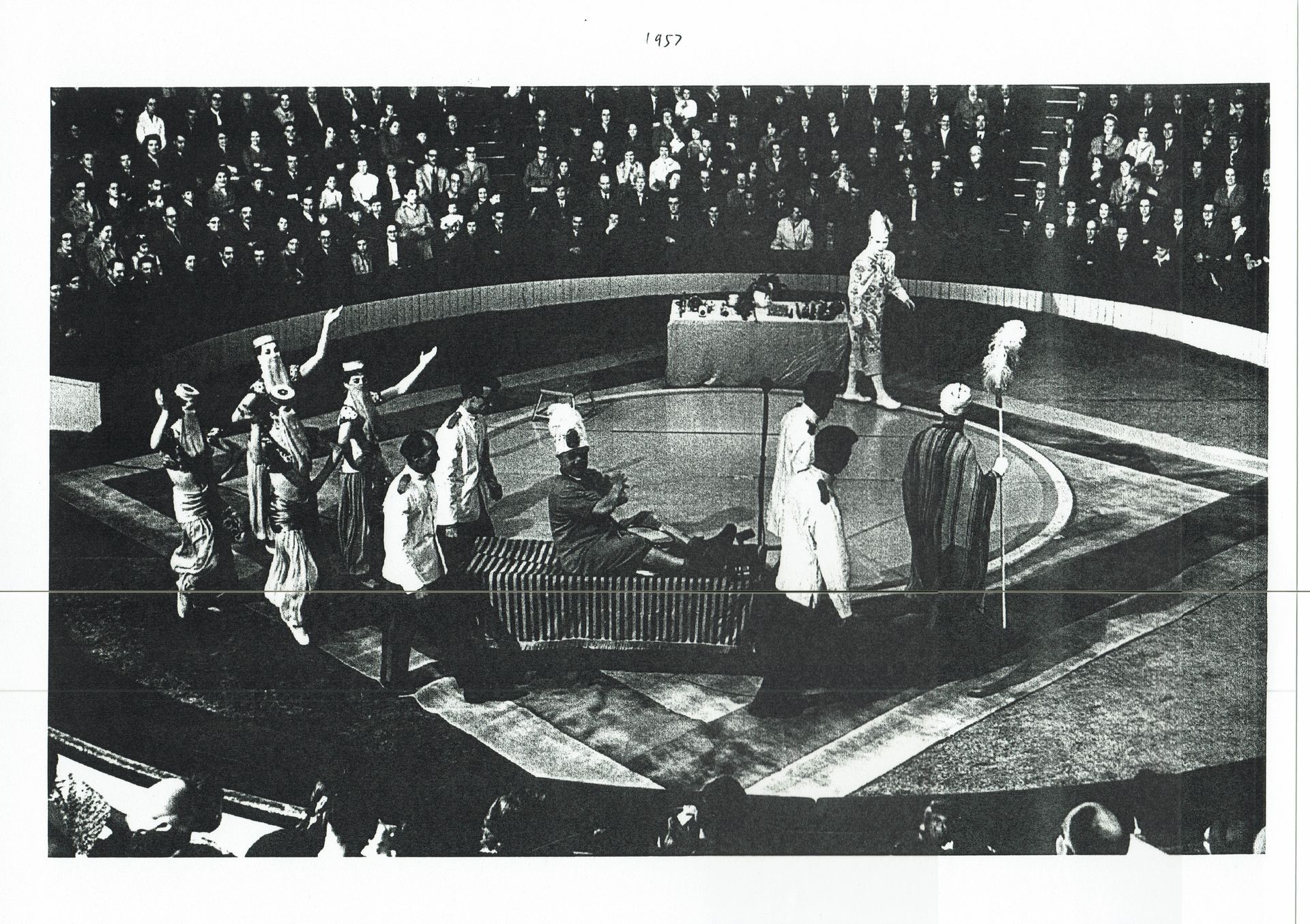 Because very few members of the audience recognised the legend of Theseus and the Minotaur, the sketch quickly fell flat. Charlie soon reinstated his reliable and much-loved team of Boy Scouts, once again attempting to enjoy a picnic on the same island originally built for the earliest water sketches. The gags developed in the second part of the 1954 entry were further extended and strengthened.